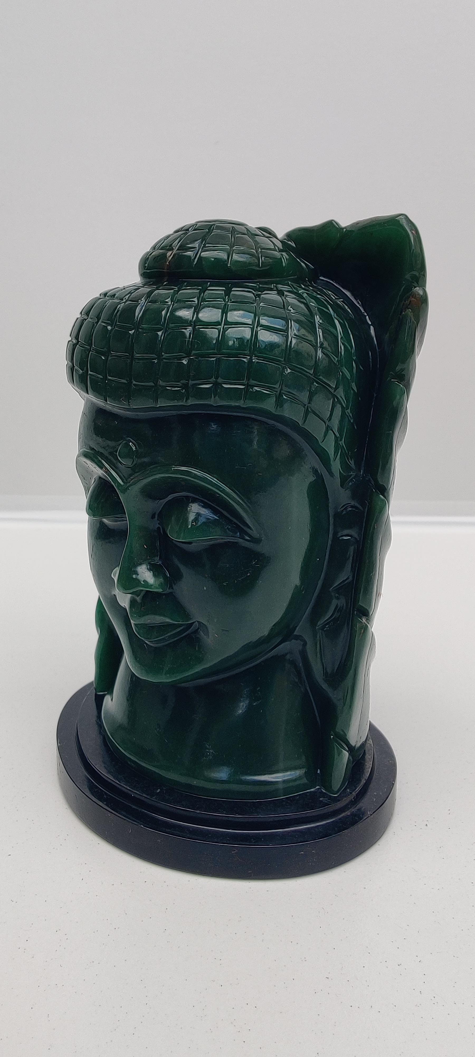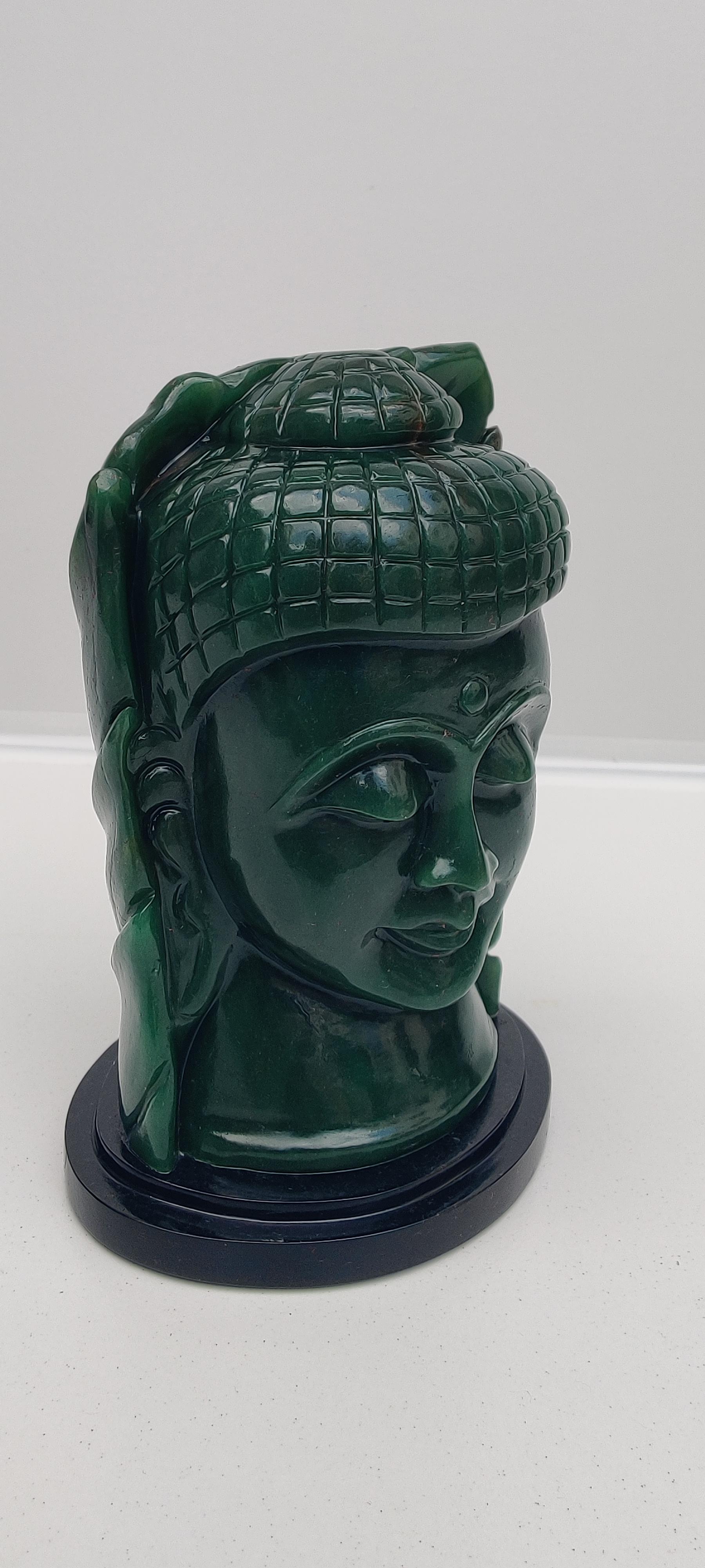 Beautifully carved buddha head in Columbian jade stone.