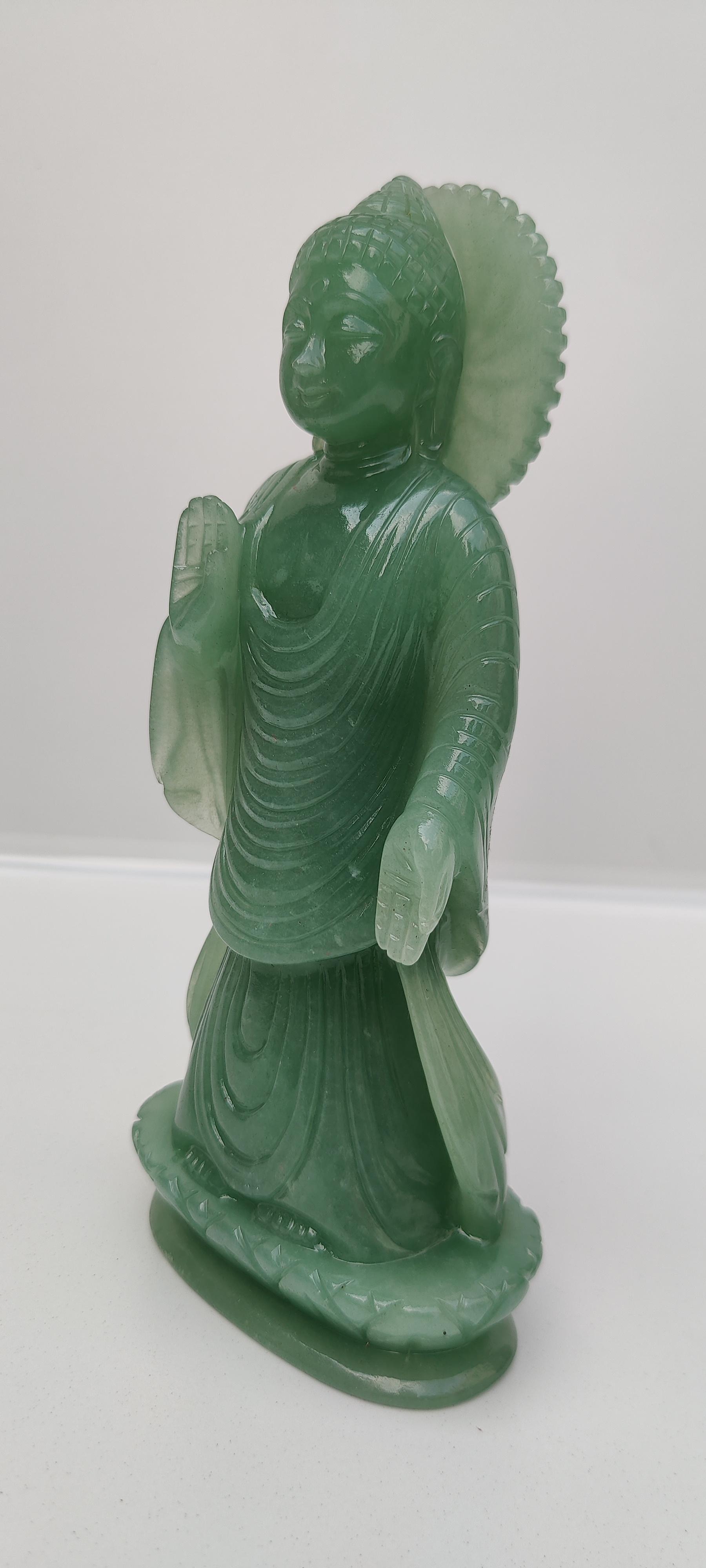 Beautifully handcarved buddha statue in green aventurine gem stone.