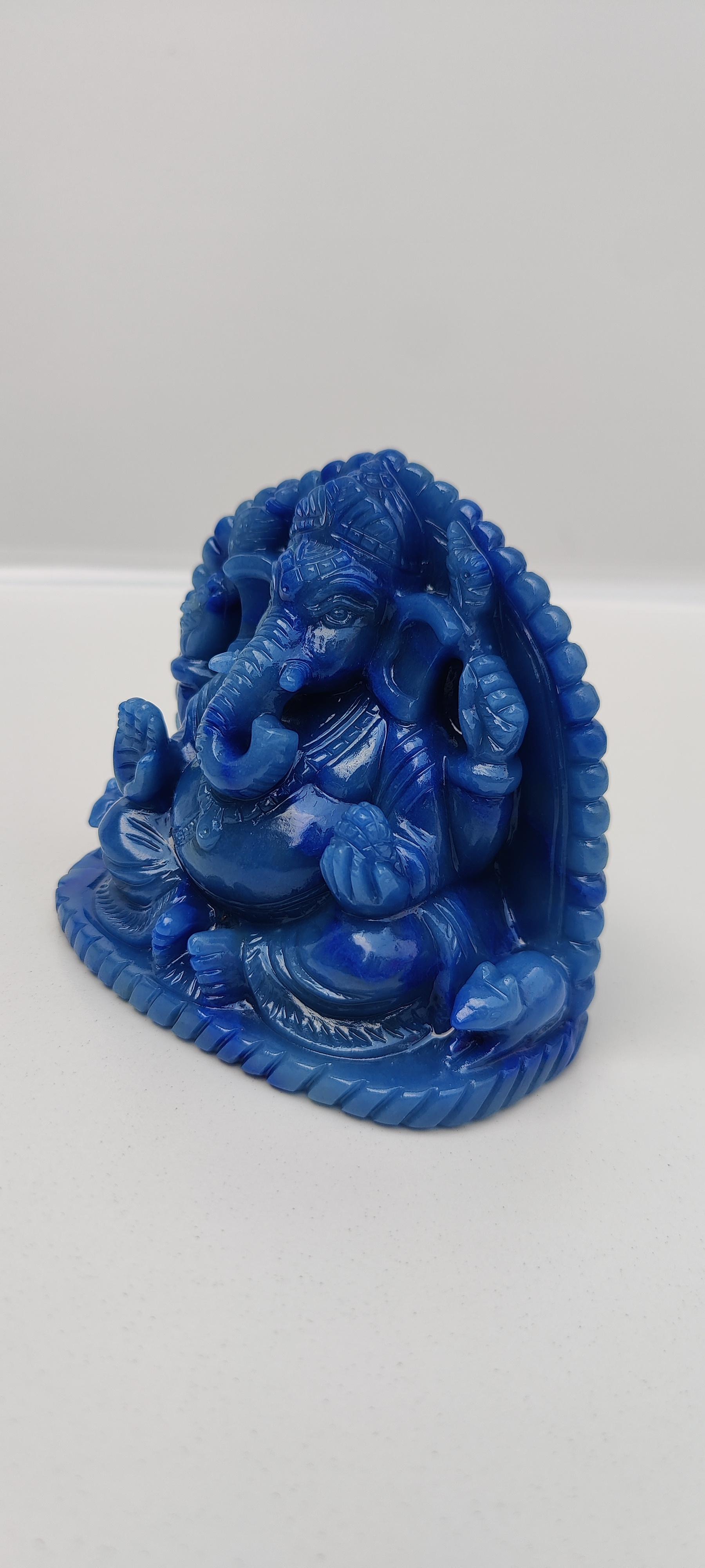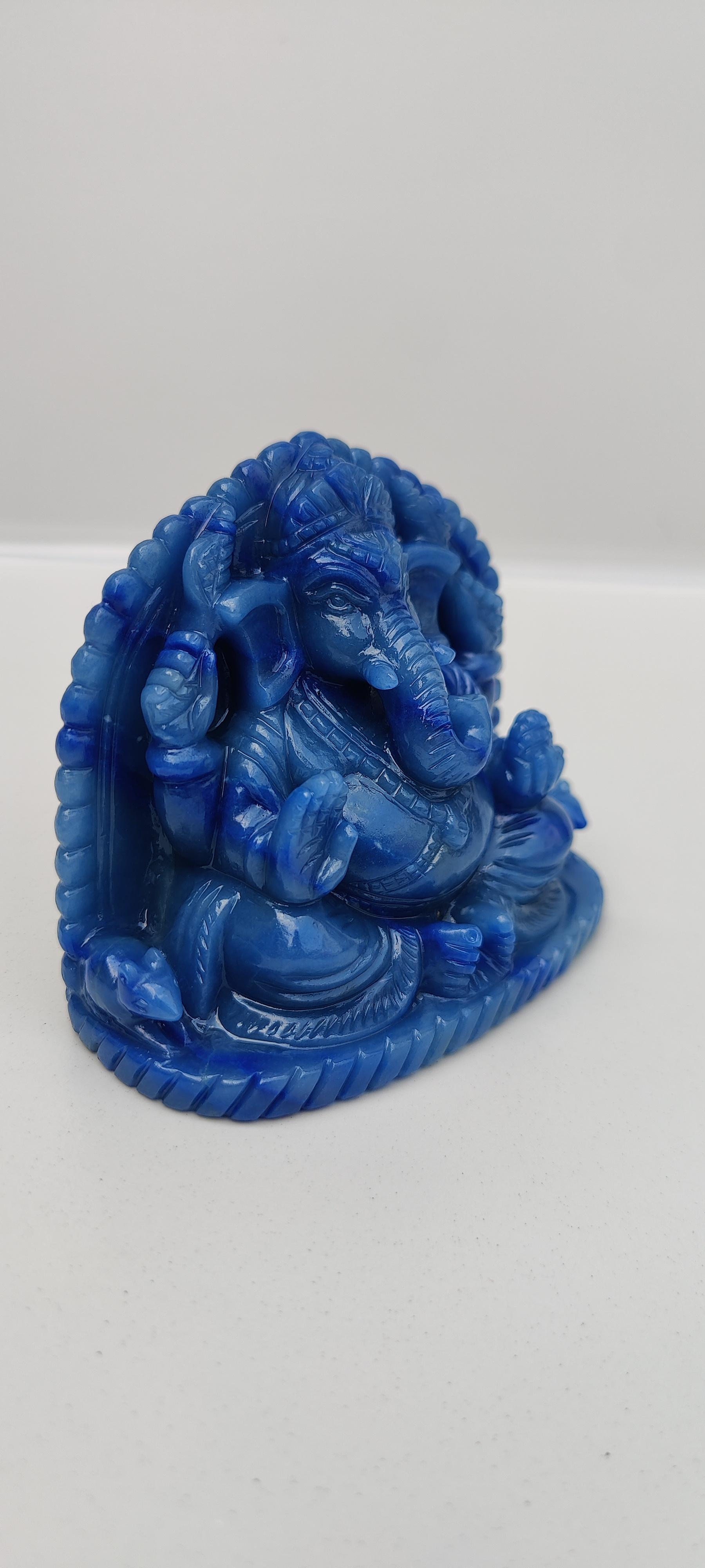 Beautifully hand carved reclining ganesha in clear quarts stone.