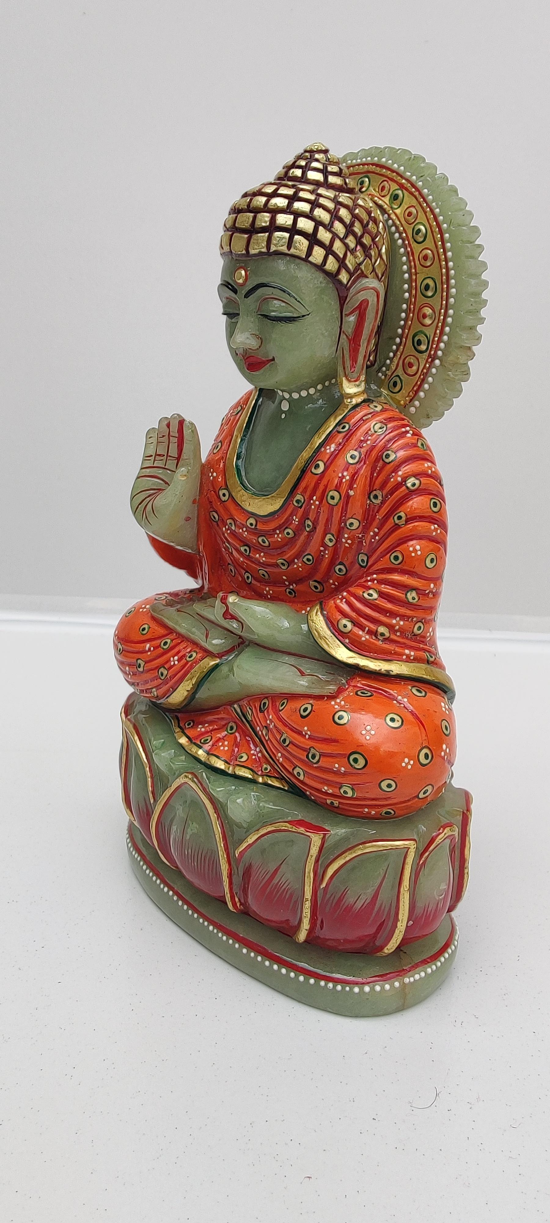 Beautifully hand carved Buddha statue in green aventurine gem stone.