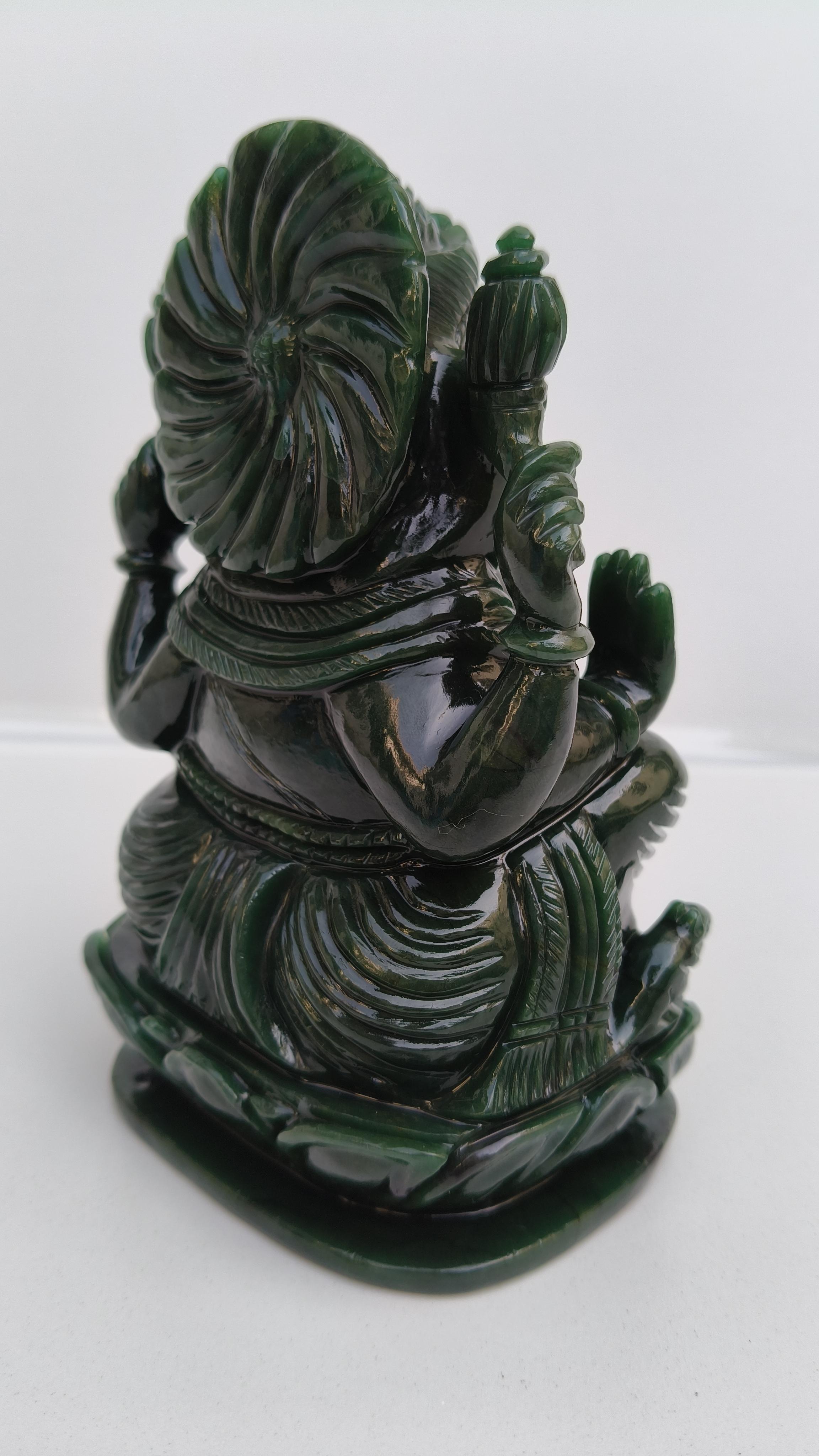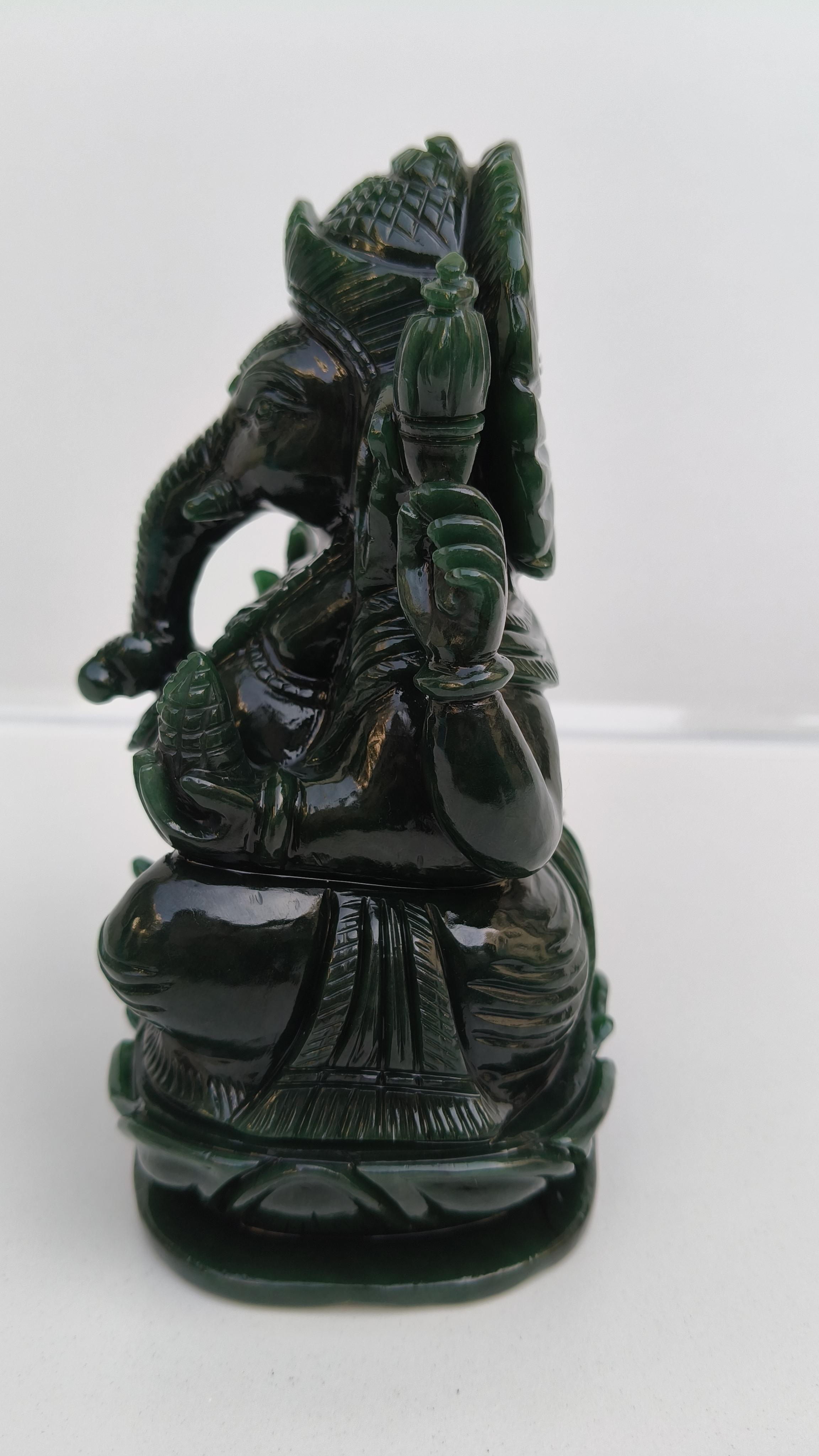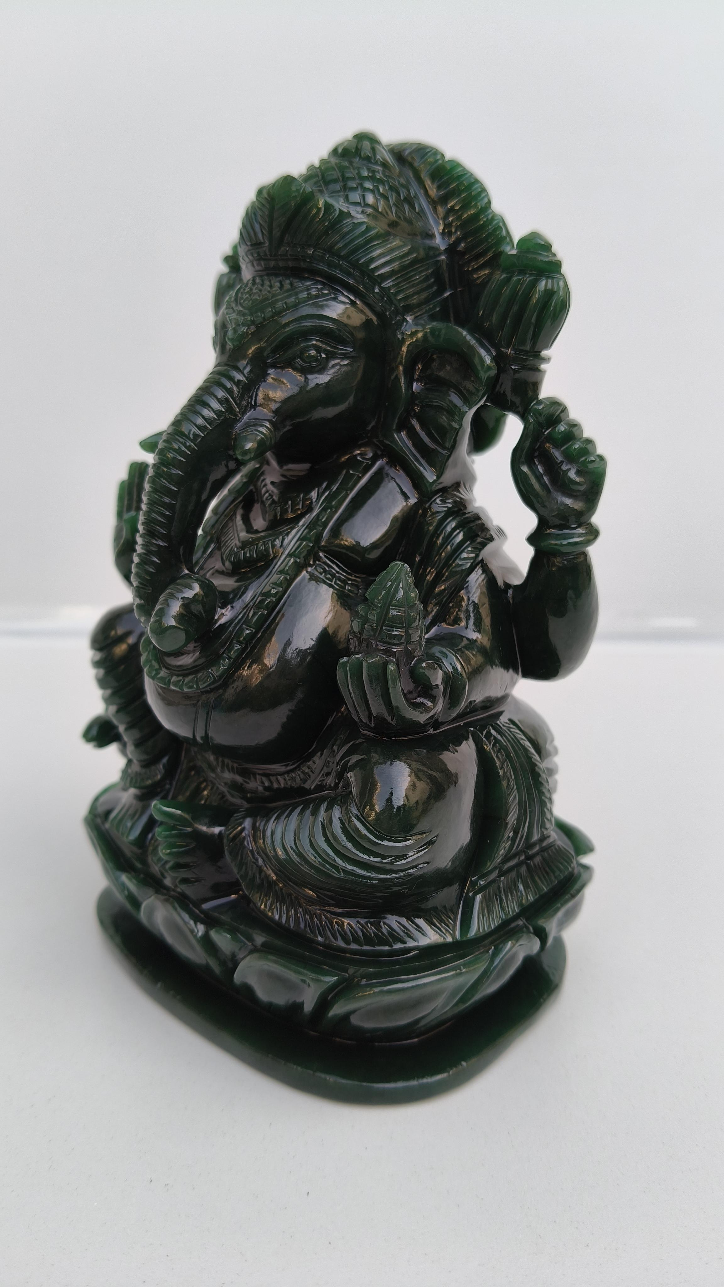 Beautifully handcarved Lord Ganesha in Columbian jade stone.