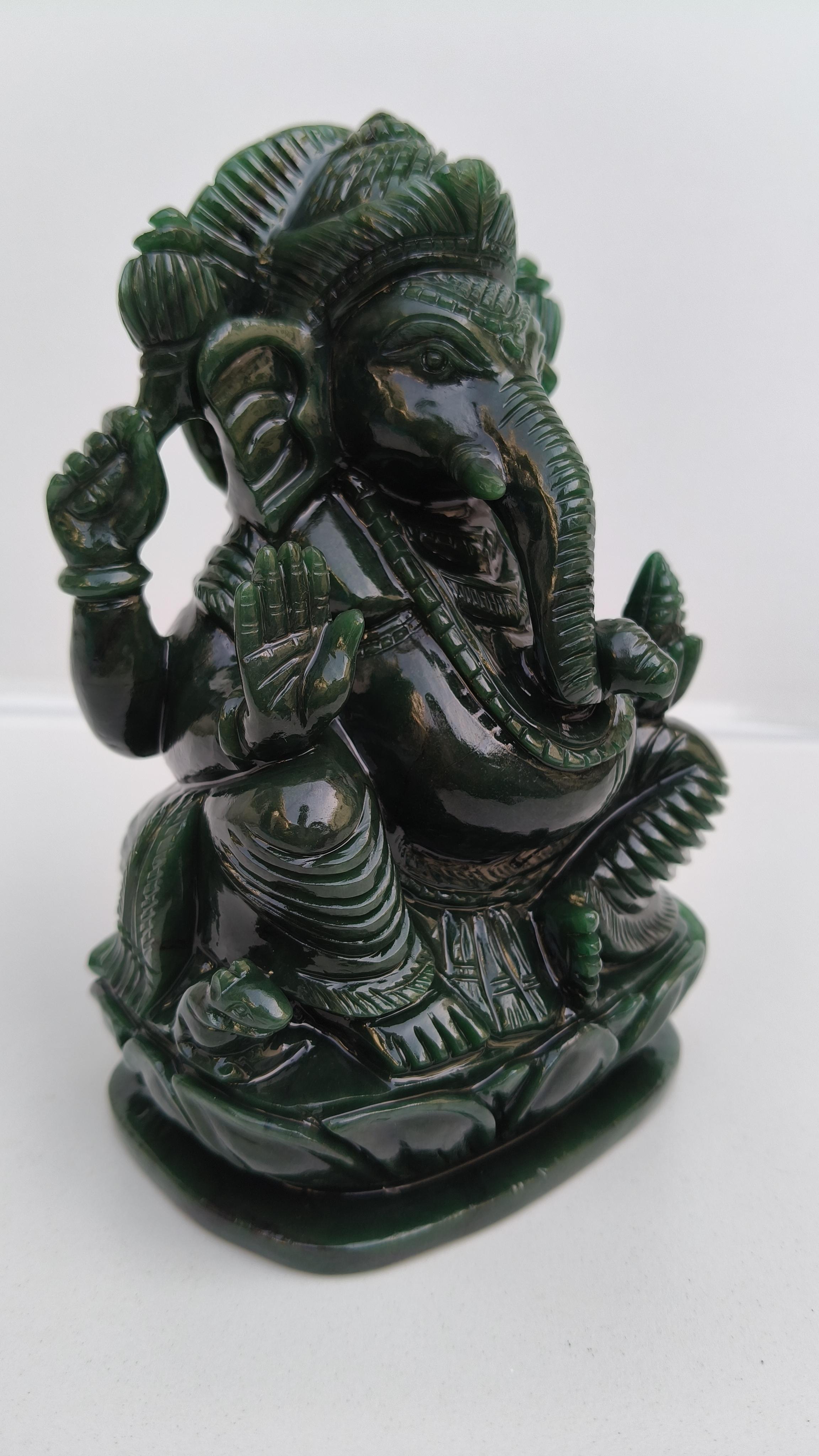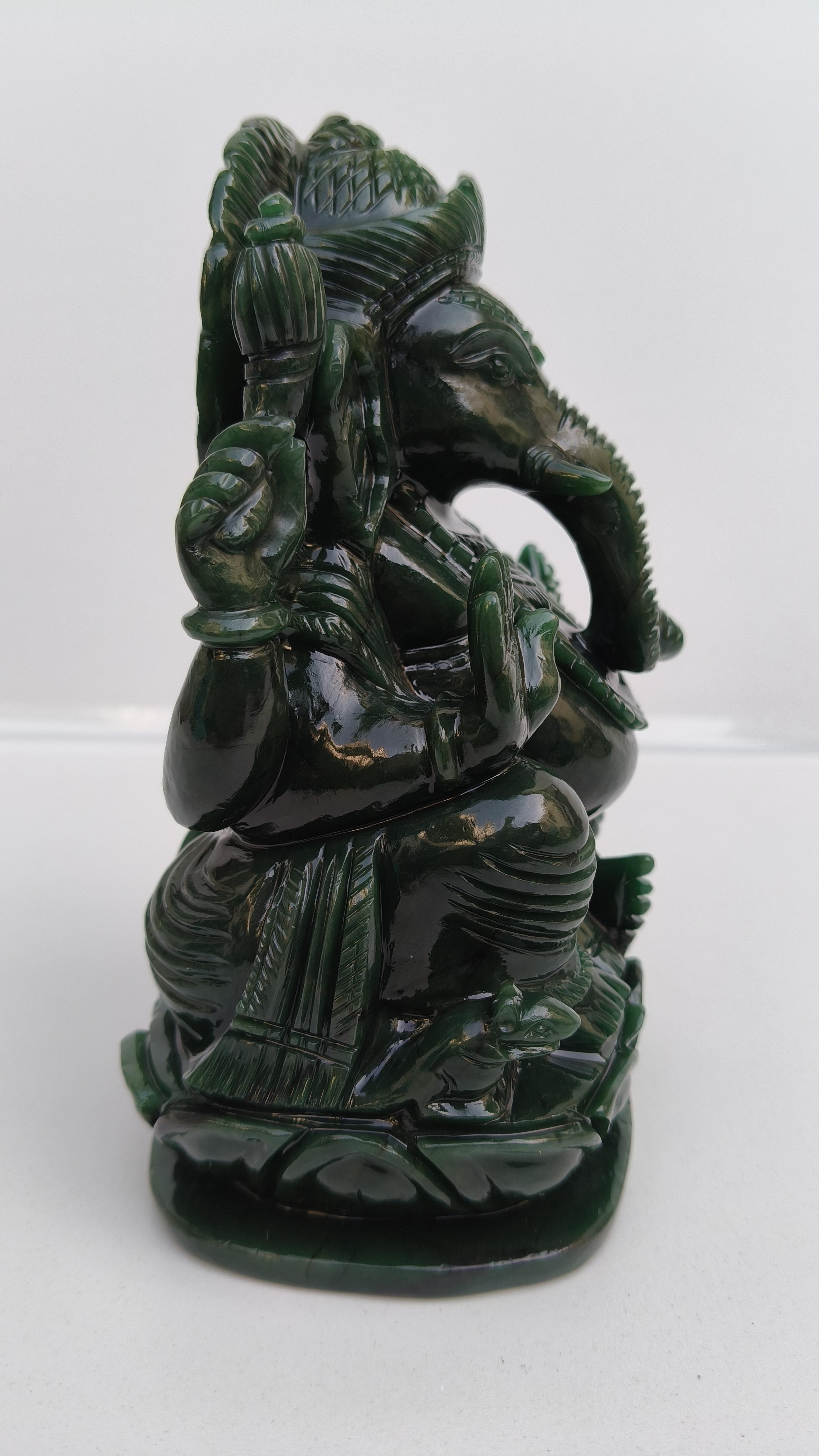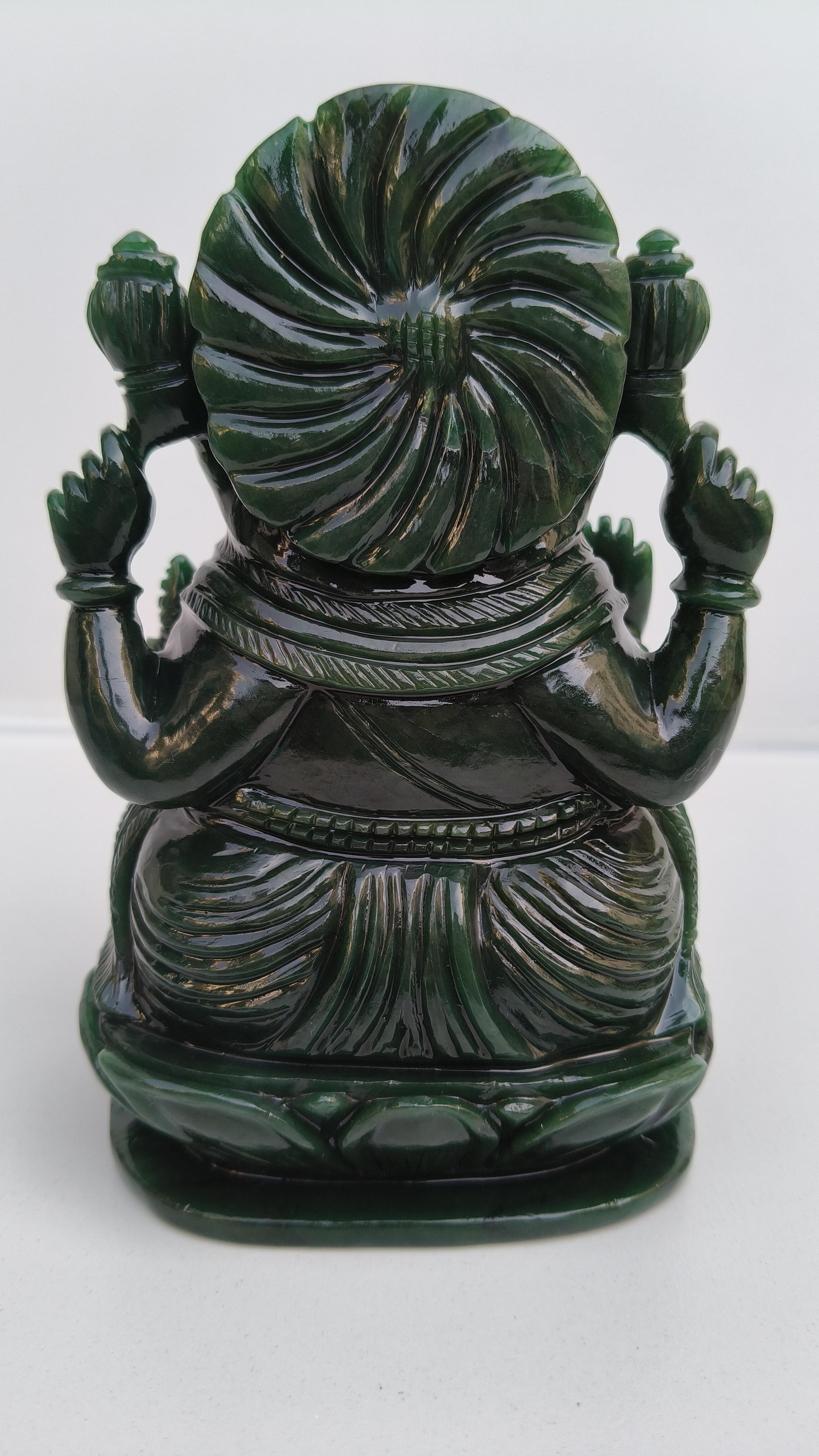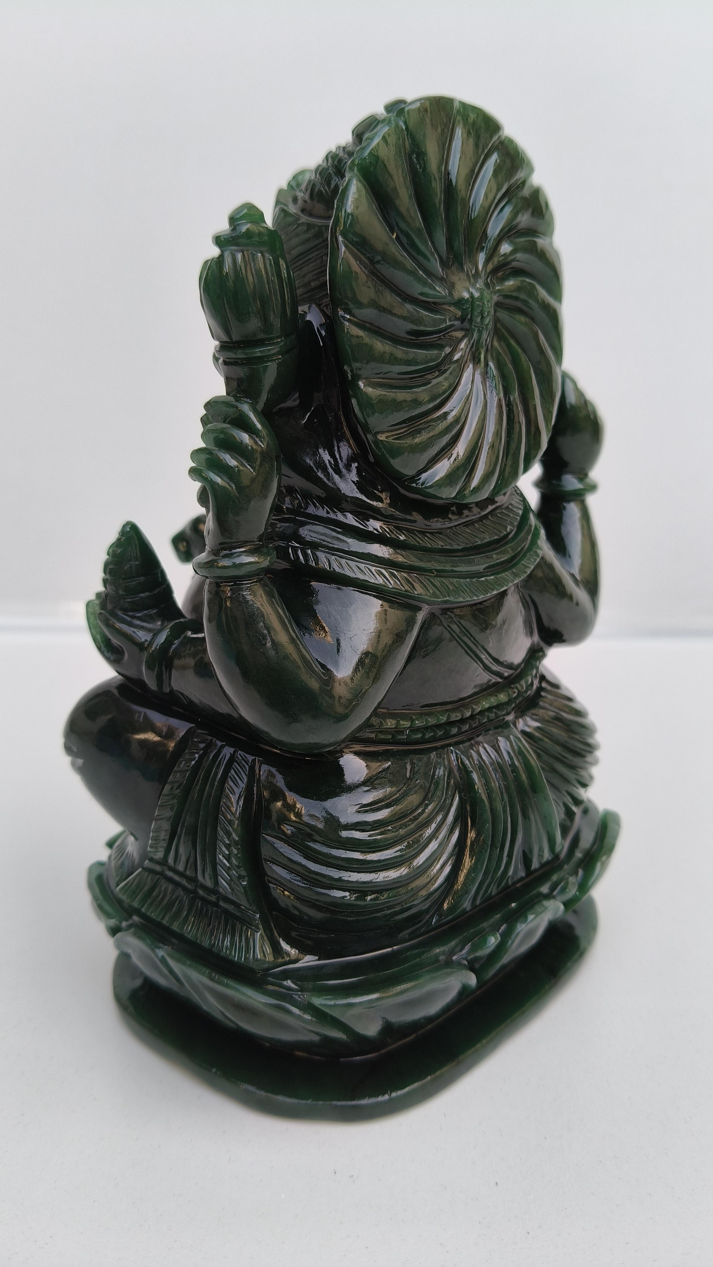 Beautifully handcarved Lord Ganesha in Columbian jade stone.