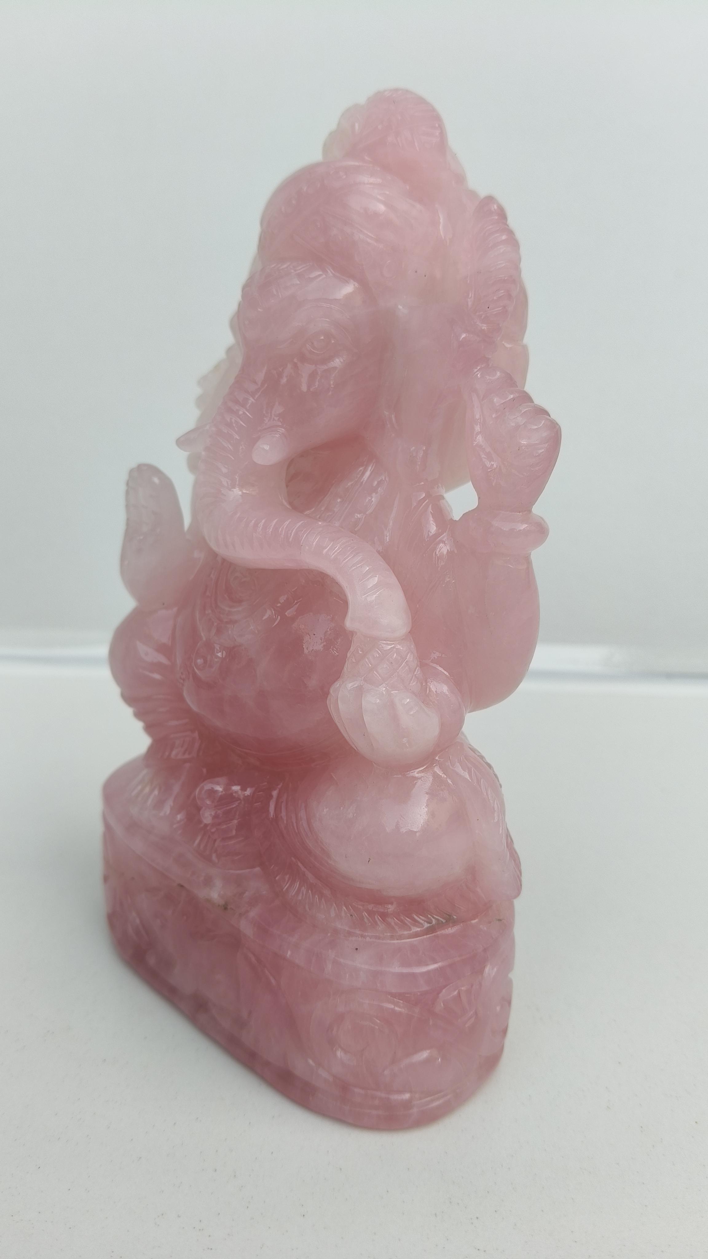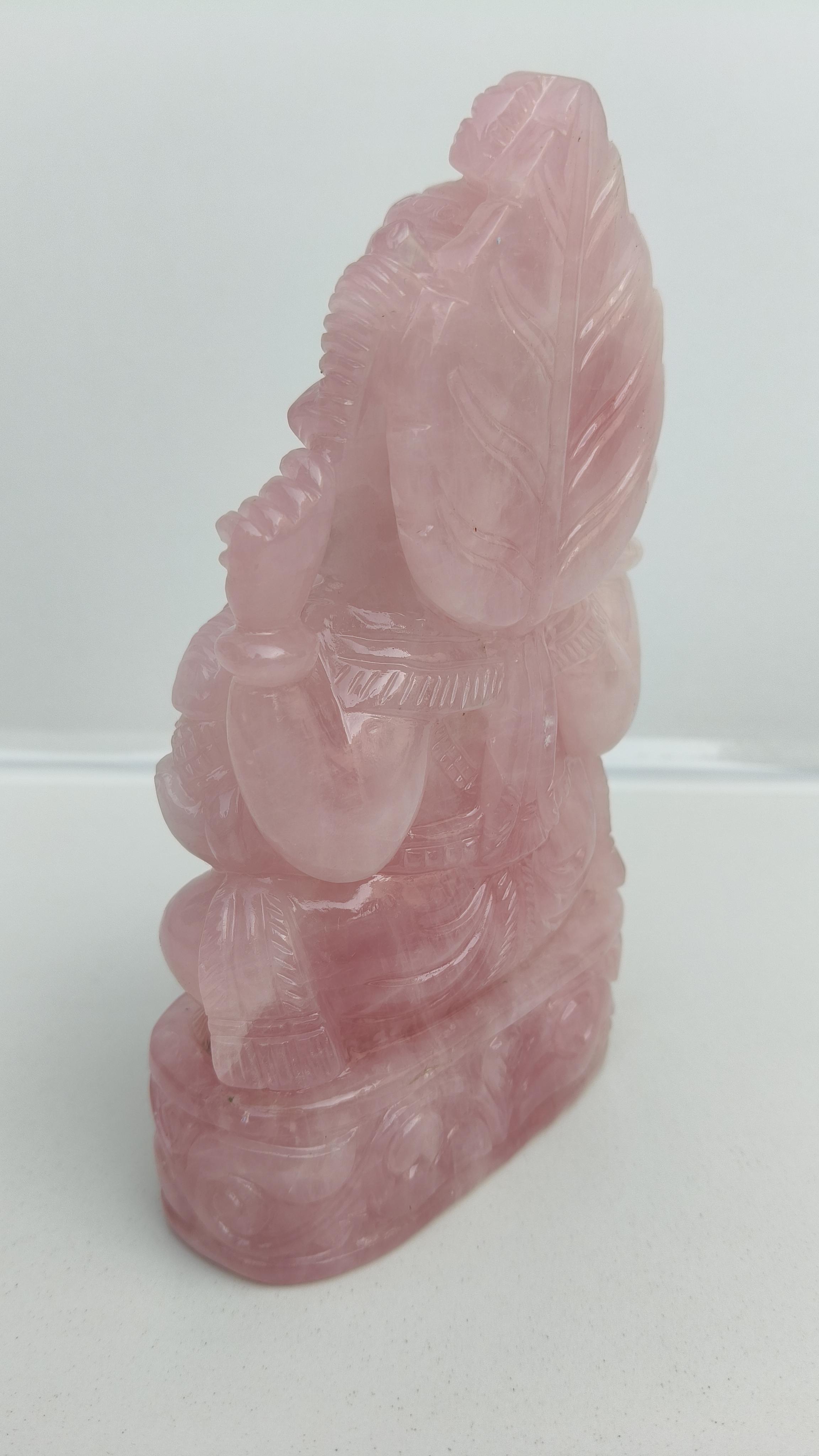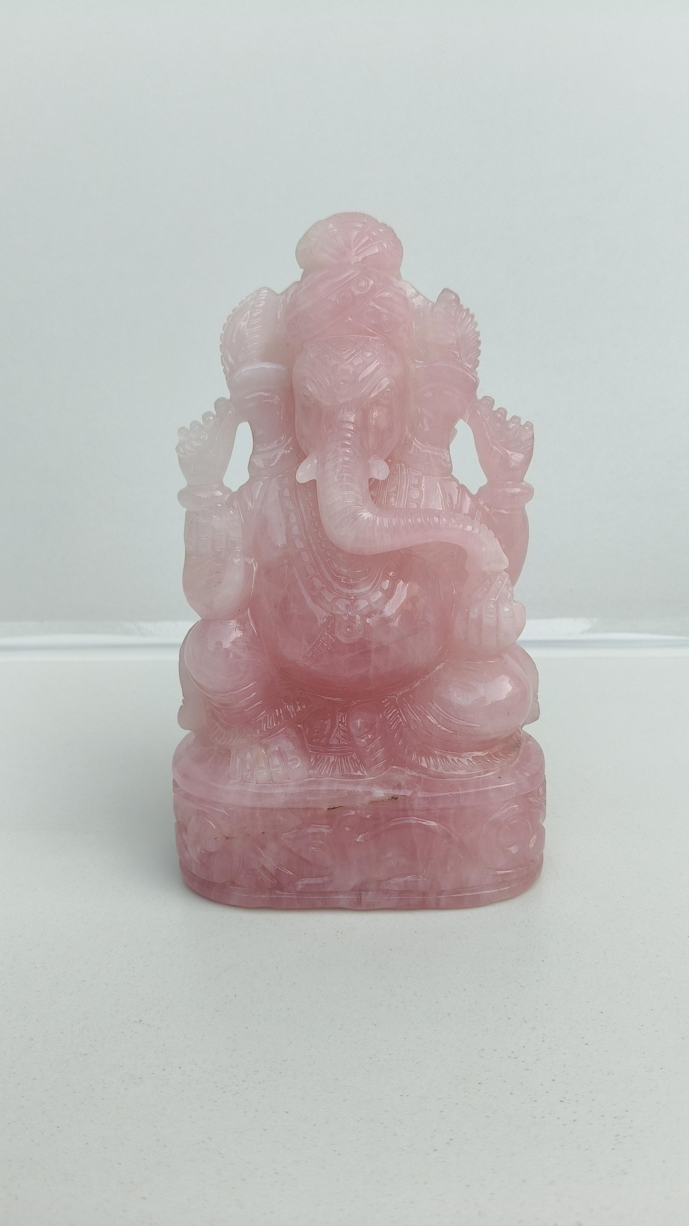 Beautifully hand carved Lord Ganesha in Rose quarts semi precious stone.