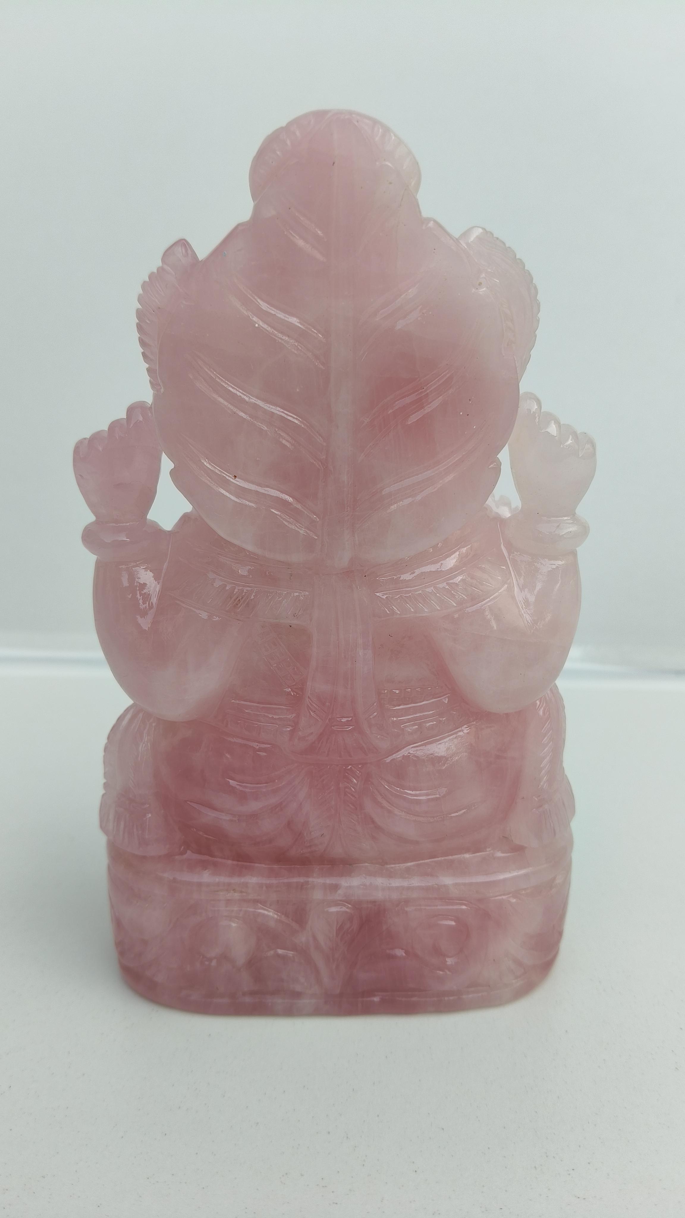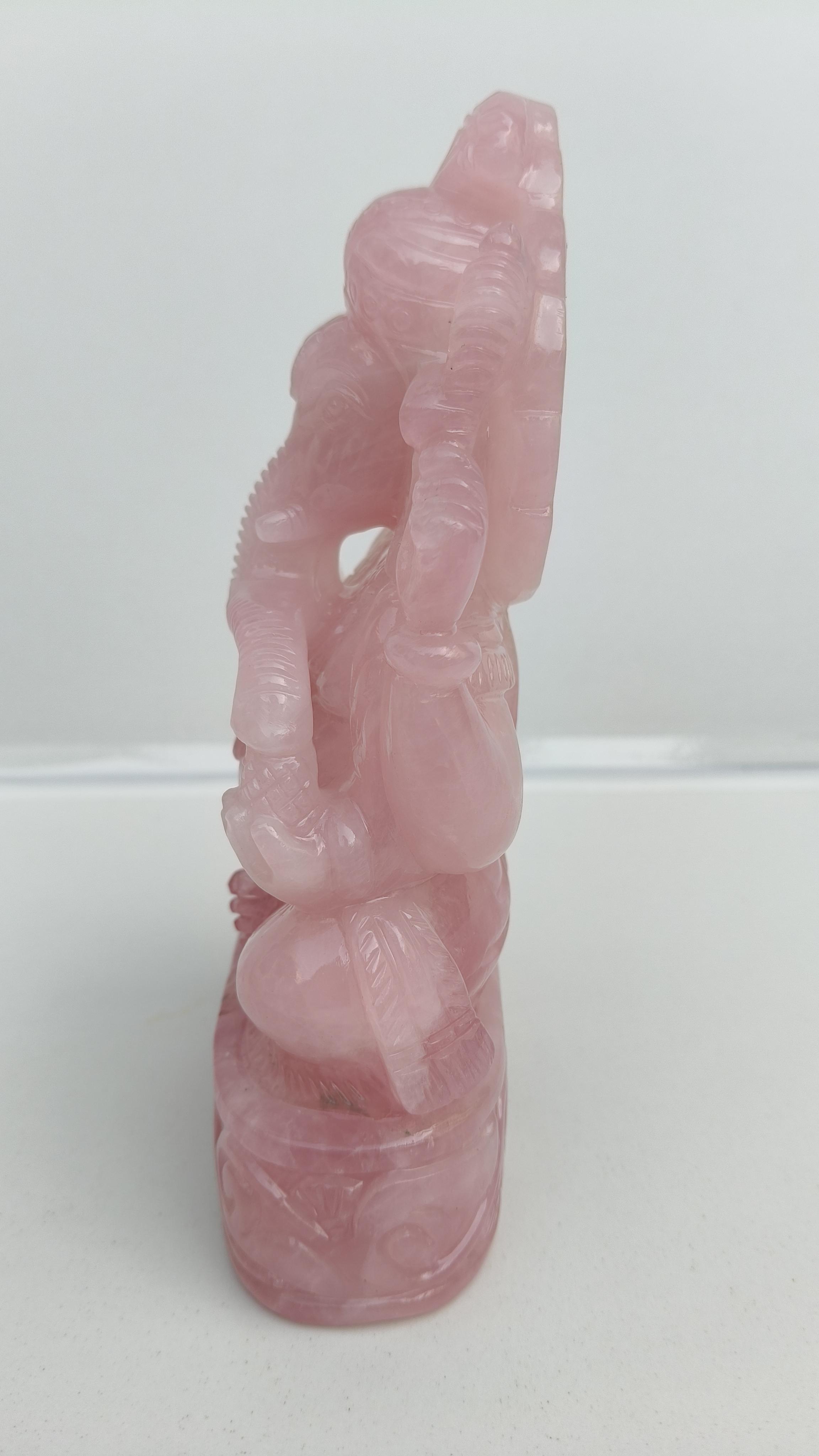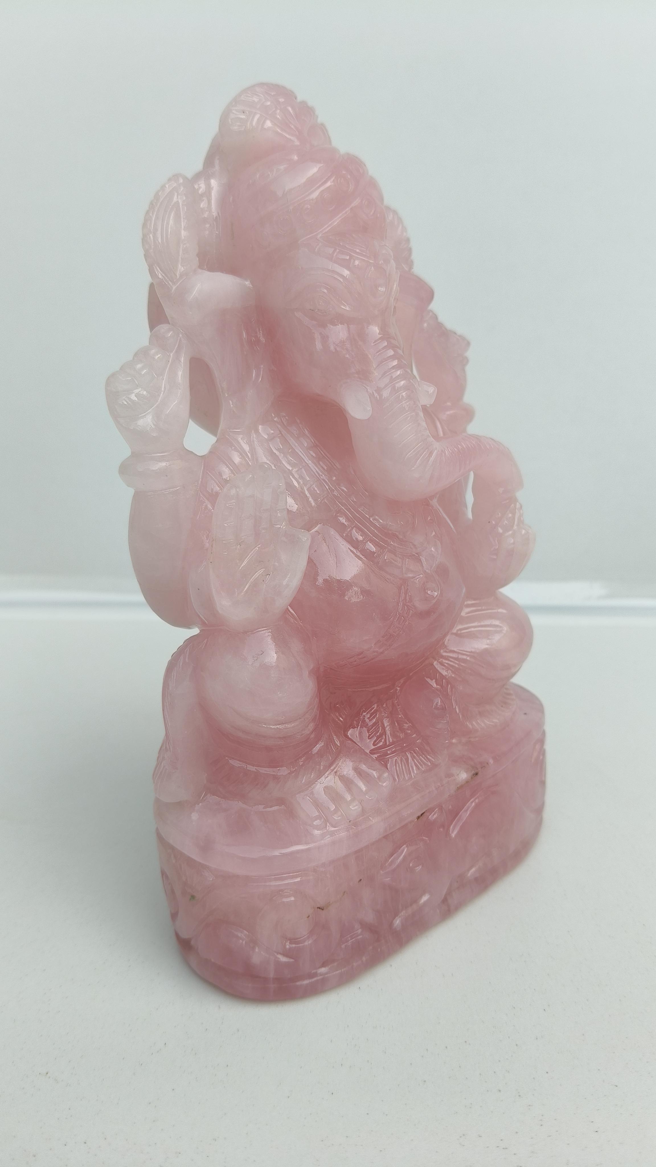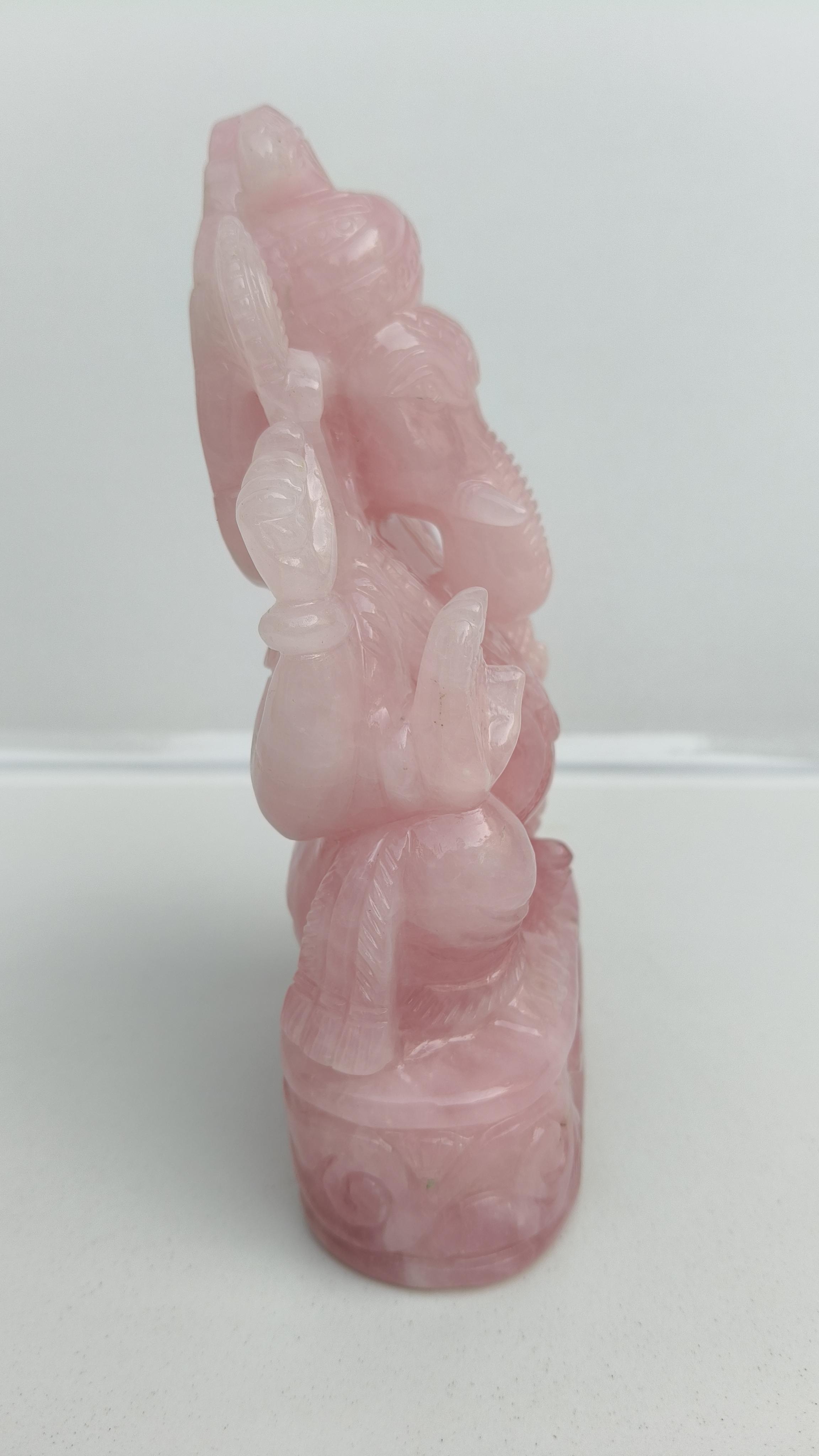 Beautifully hand carved Lord Ganesha in Rose quarts semi precious stone.