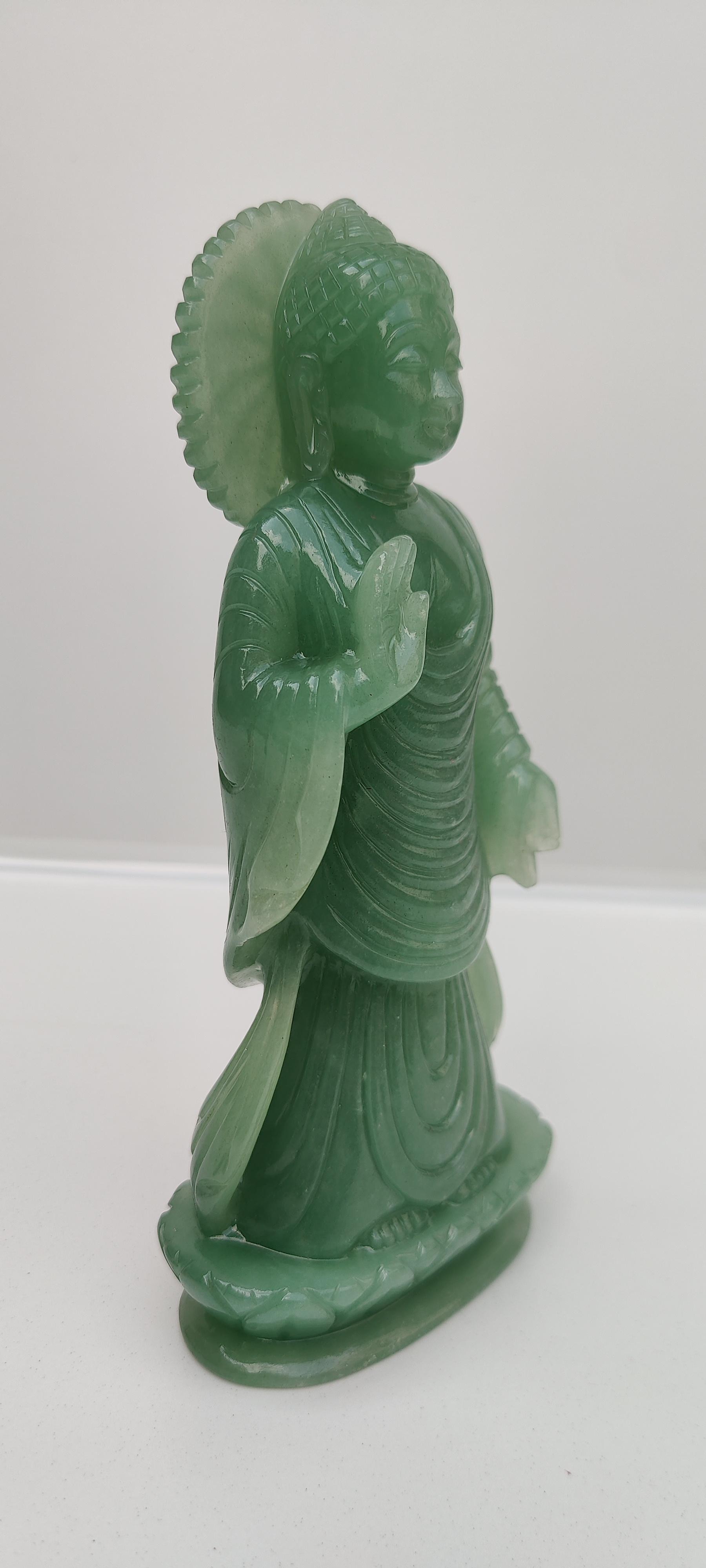 Beautifully handcarved buddha statue in green aventurine gem stone.