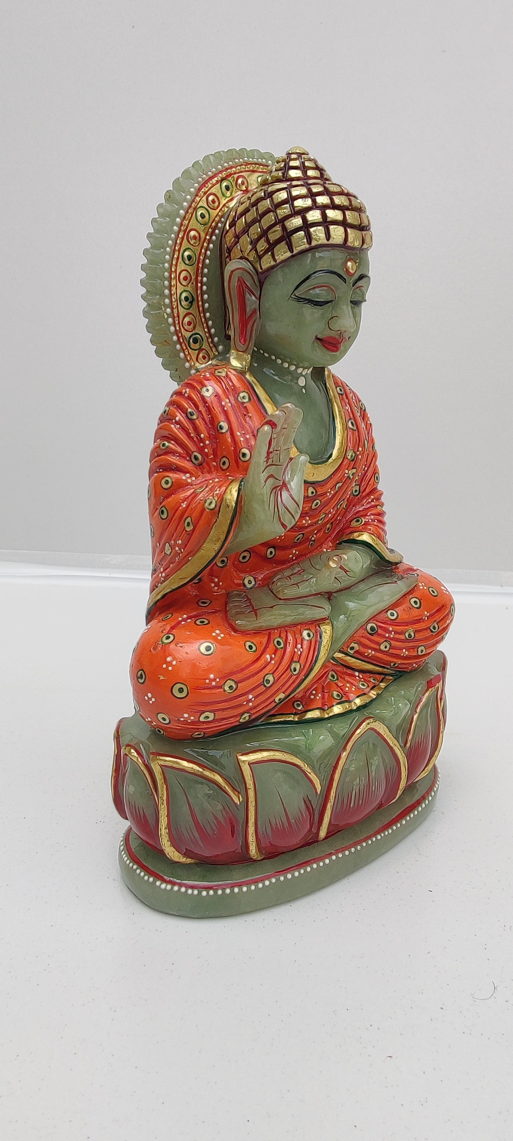 Beautifully hand carved Buddha statue in green aventurine gem stone.