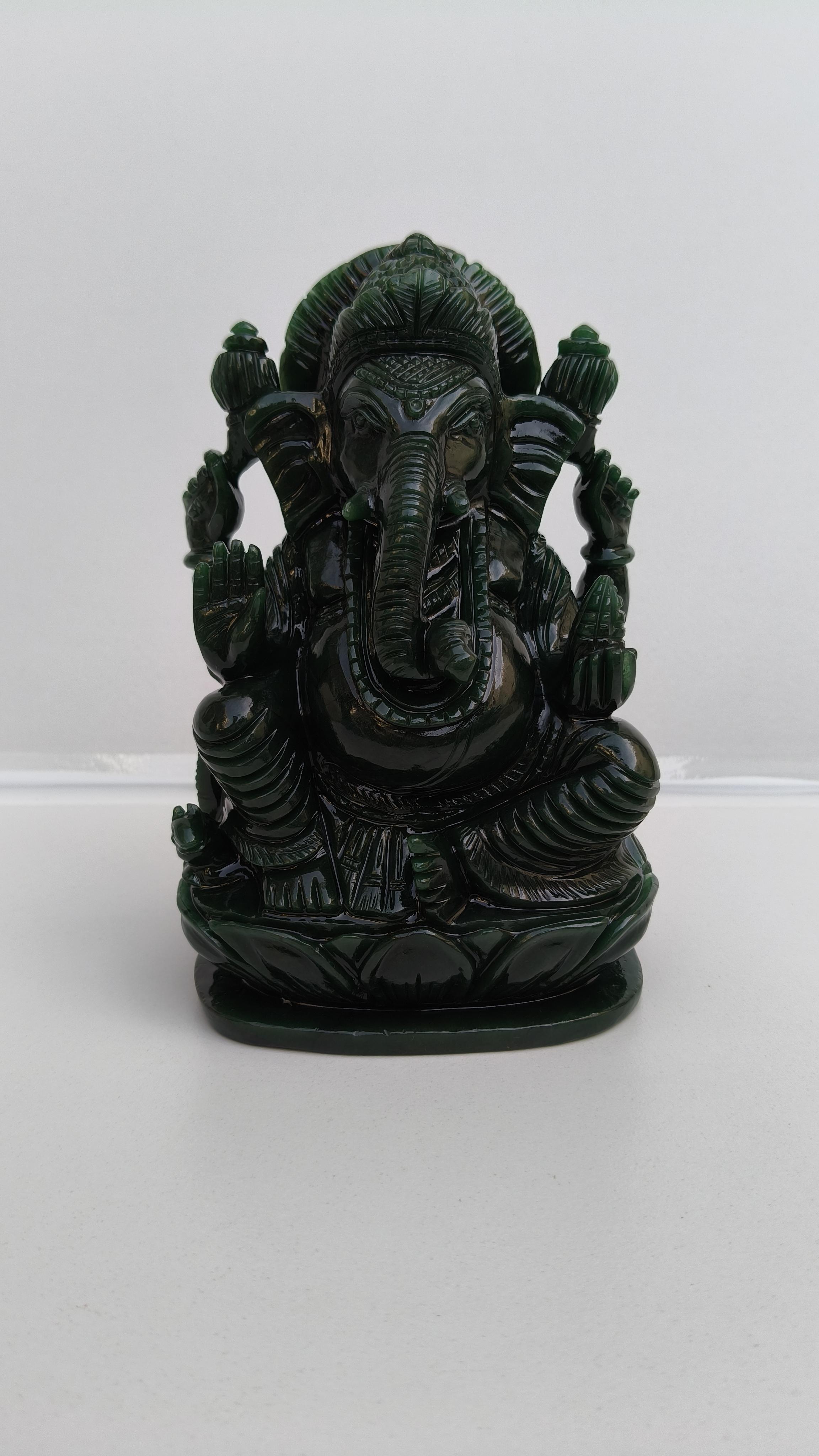 Beautifully handcarved Lord Ganesha in Columbian jade stone.