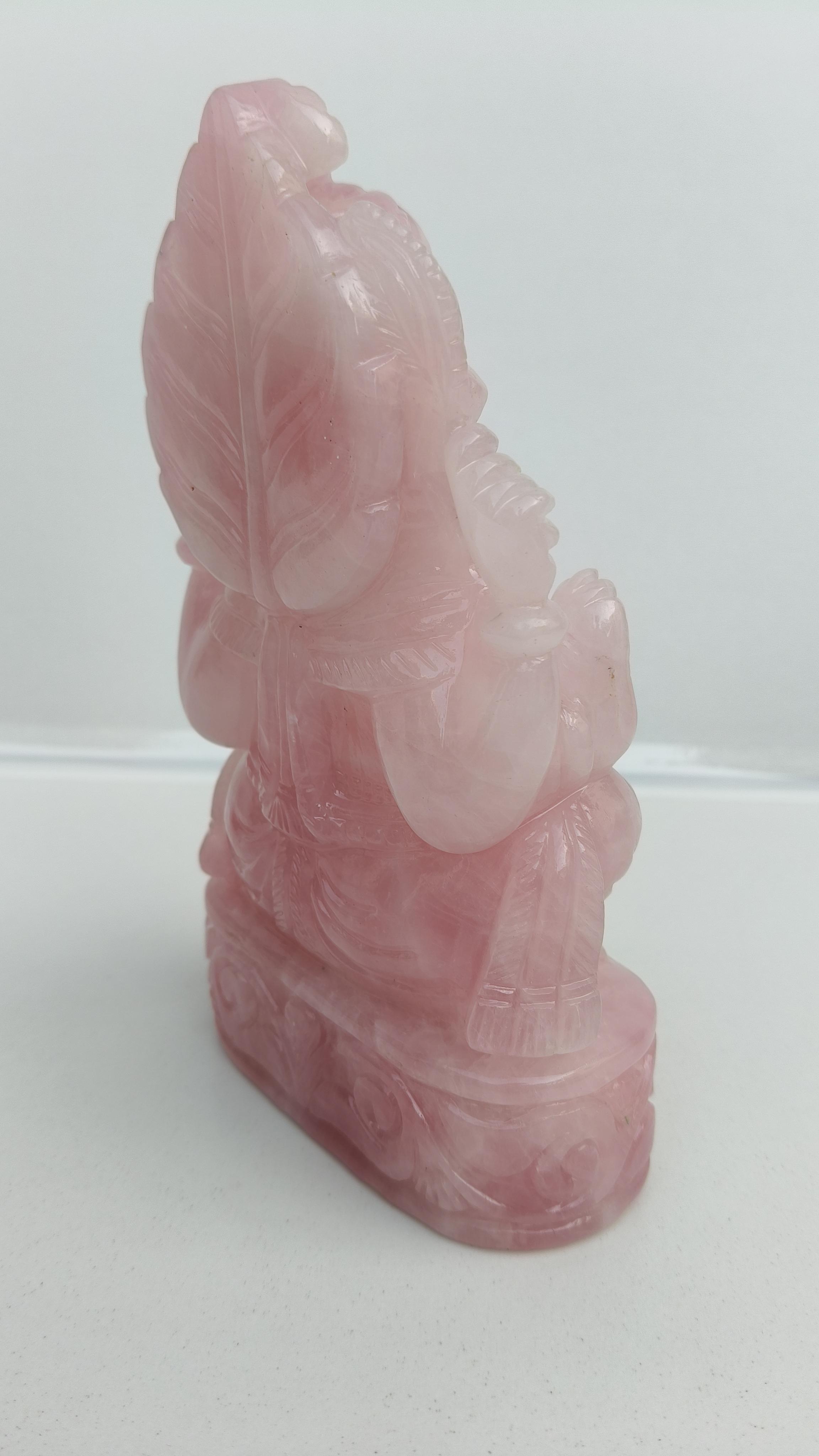 Beautifully hand carved Lord Ganesha in Rose quarts semi precious stone.